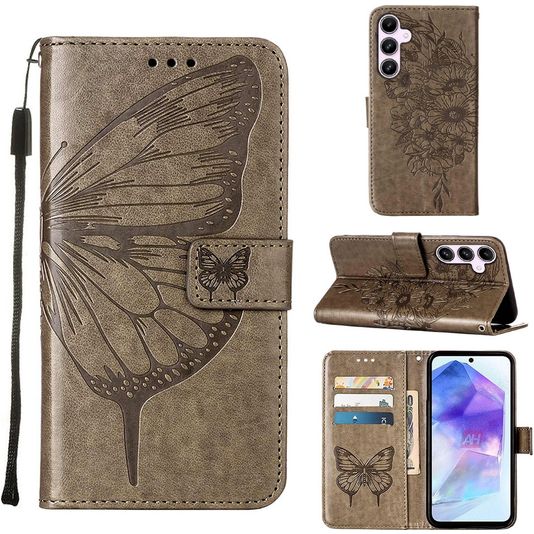 Mobigear Butterfly Housse Samsung Galaxy A55 Etui Porte-Monnaie - Gris