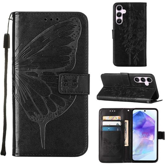 Mobigear Butterfly Housse Samsung Galaxy A55 Etui Porte-Monnaie - Noir