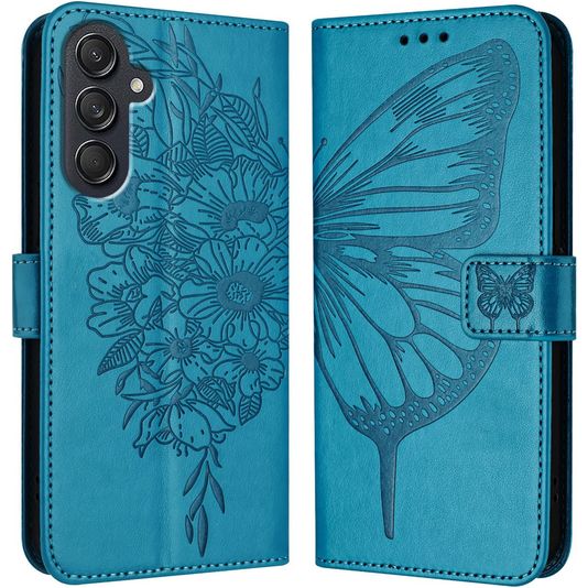 Mobigear Butterfly Housse Samsung Galaxy M55 Etui Porte-Monnaie - Bleu
