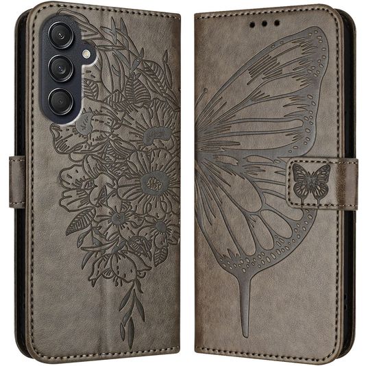 Mobigear Butterfly Housse Samsung Galaxy M55 Etui Porte-Monnaie - Gris