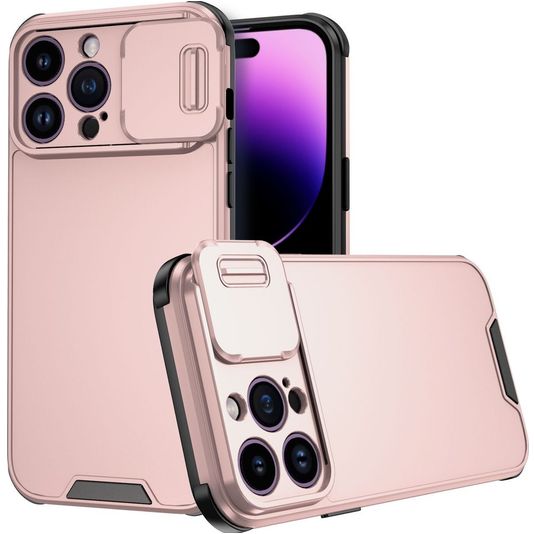 Mobigear Cam Slide Coque iPhone 14 Pro Max Coque arrière Rigide avec Protecteur Lentilles - Rose doré