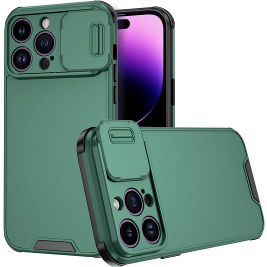 Mobigear Cam Slide Coque iPhone 14 Pro Max Coque arrière Rigide avec Protecteur Lentilles - Vert