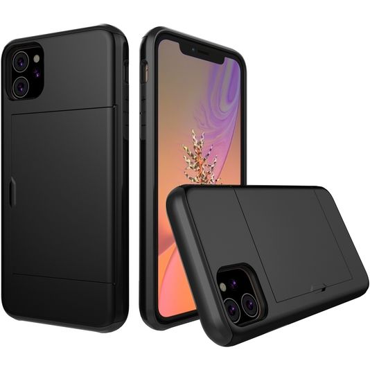 Mobigear Card Coque iPhone 11 Coque arrière Rigide Anti-Chocs avec Porte-Cartes - Noir