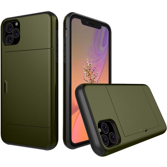 Mobigear Card Coque iPhone 11 Pro Coque arrière Rigide Anti-Chocs avec Porte-Cartes - Vert armée