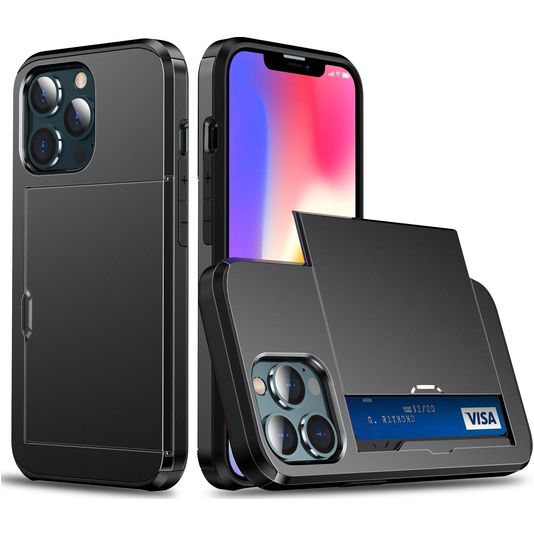 Mobigear Card Coque iPhone 13 Coque arrière Rigide Anti-Chocs avec Porte-Cartes - Noir