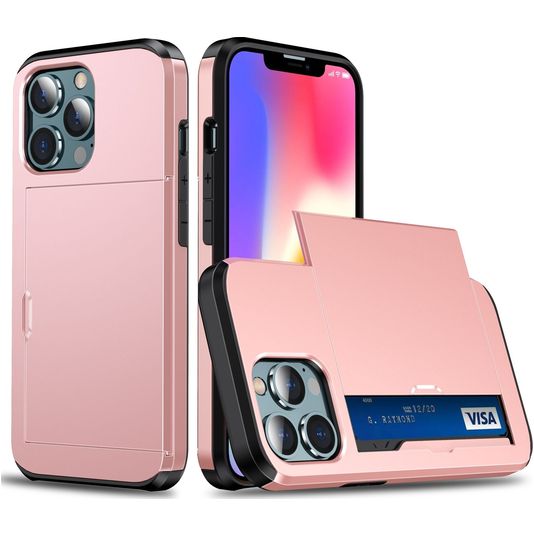 Mobigear Card Coque iPhone 13 Coque arrière Rigide Anti-Chocs avec Porte-Cartes - Rose doré