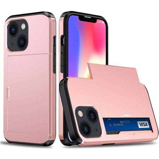 Mobigear Card Coque iPhone 15 Plus Coque arrière Rigide Anti-Chocs avec Porte-Cartes - Rose doré