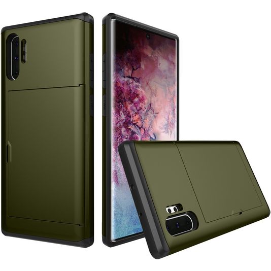 Mobigear Card Coque Samsung Galaxy Note 10 Plus Coque arrière Rigide Anti-Chocs avec Porte-Cartes - Vert