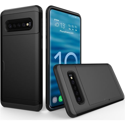 Mobigear Card Coque Samsung Galaxy S10 Plus Coque arrière Rigide Anti-Chocs avec Porte-Cartes - Noir