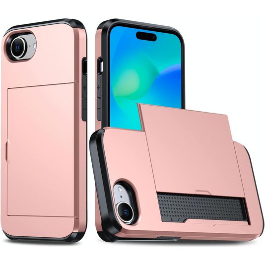 Mobigear Card Coque iPhone 16e Coque arrière Rigide Anti-Chocs avec Porte-Cartes - Rose doré