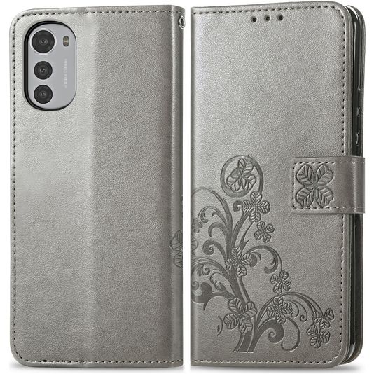 Mobigear Clover Housse Motorola Moto E32 Etui Porte-Monnaie - Gris