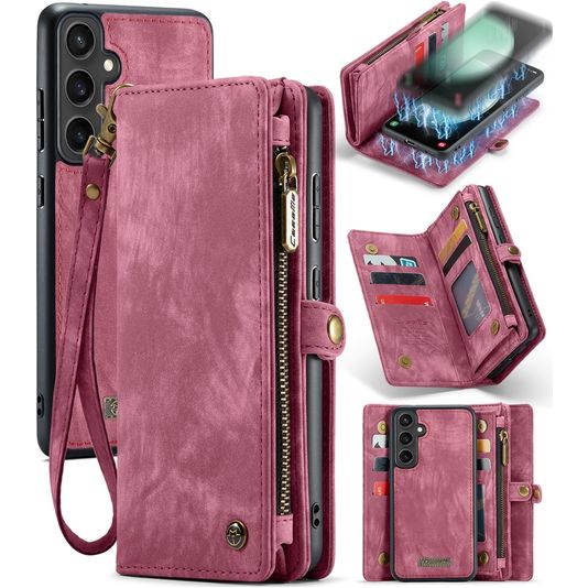 Caseme 008 Housse Samsung Galaxy S23 FE Etui avec Coque Détachable Porte-Monnaie - Rouge