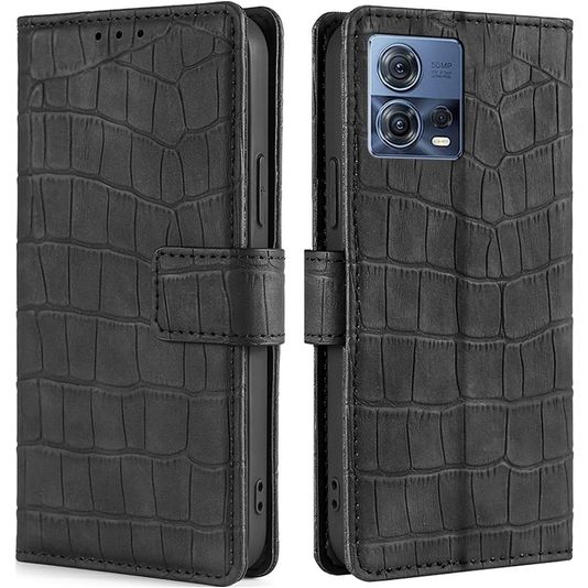 Mobigear Croco Housse Motorola Edge 30 Fusion Etui Porte-Monnaie - Noir