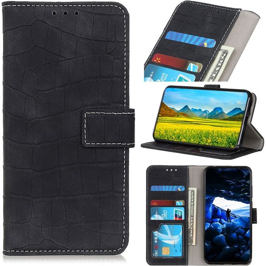 Mobigear Croco Housse Motorola Moto E22 Etui Porte-Monnaie - Noir