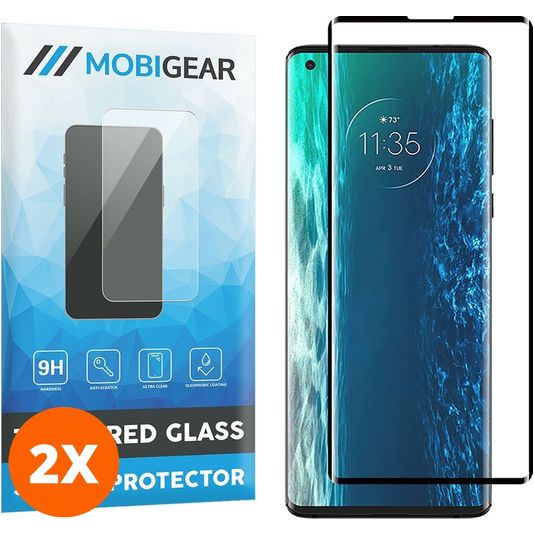 Mobigear Curved Motorola Edge (2020) Verre trempé Protection d'écran - Compatible Coque - Noir (Lot de 2)
