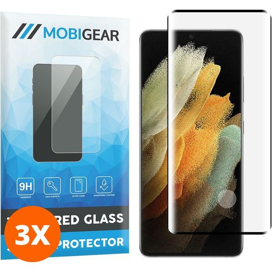 Mobigear Curved Samsung Galaxy S21 Ultra Verre trempé Protection d'écran - Compatible Coque - Noir (Lot de 3)