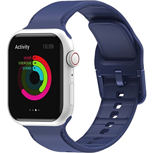 Mobigear Dashed Bracelet Silicone Apple Watch Fermeture boucle ardillon - 42/41/40/38 mm - Dark Blue