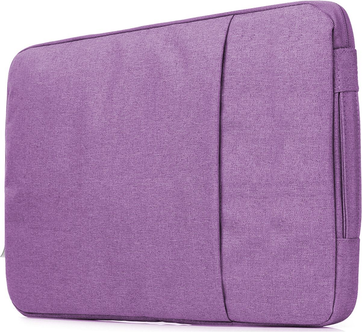 L'ordinateur portable pochette est fabriqué en polyester et est de couleur violet. Avec le fermeture éclair, vous fermez le sac en toute sécurité.
