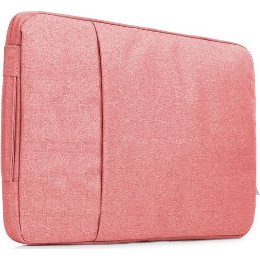 L'ordinateur portable pochette est fabriqué en polyester et est de couleur magenta. Avec le fermeture éclair, vous fermez le sac en toute sécurité.