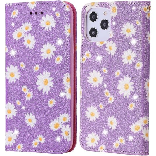 Mobigear Daisies Housse iPhone 12 Pro Max Etui Porte-Monnaie - Violet