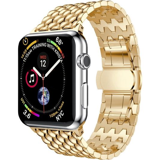 Mobigear Dragon Bracelet Acier Apple Watch Fermeture boucle déployante - 49/46/45/44 mm - Or