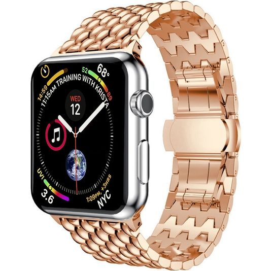 Mobigear Dragon Bracelet Acier Apple Watch Fermeture boucle déployante - 49/46/45/44 mm - Rose doré