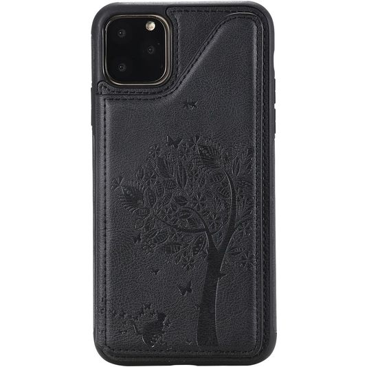 Mobigear Tree Wallet Coque iPhone 11 Pro Max Coque arrière Anti-Chocs avec Porte-Cartes et Support Amovible - Noir