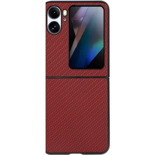 Protège ton OPPO Find N2 Flip des dommages avec la coque arrière Mobigear Carbon fabriquée en plastique rigide robuste. La coque est de couleur rouge et coque l'arrière et le côté de ton téléphone. L'avant reste libre avec cette coque arrière, ton écran est donc toujours directement accessible. Avec cette coque arrière, ton écran n'est pas protégé. Ajoute un protection d'écran OPPO Find N2 Flip pour une protection complète.