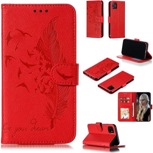 Mobigear Feather Housse iPhone 11 Etui Porte-Monnaie - Rouge