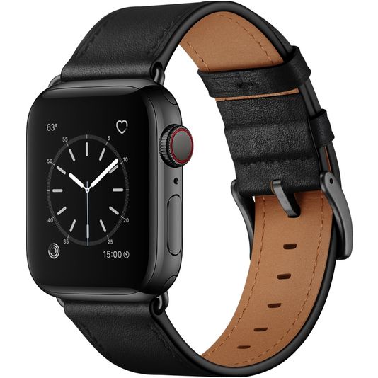 Mobigear Firenze Bracelet Cuir Apple Watch Fermeture boucle ardillon - 49/46/45/44 mm - Noir