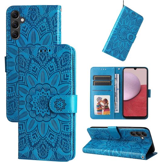Mobigear Sunflower Housse Samsung Galaxy A14 Etui Porte-Monnaie - Bleu