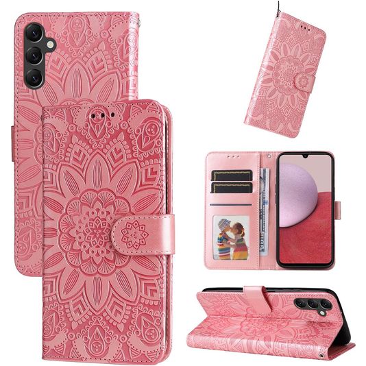Mobigear Sunflower Housse Samsung Galaxy A14 Etui Porte-Monnaie - Magenta