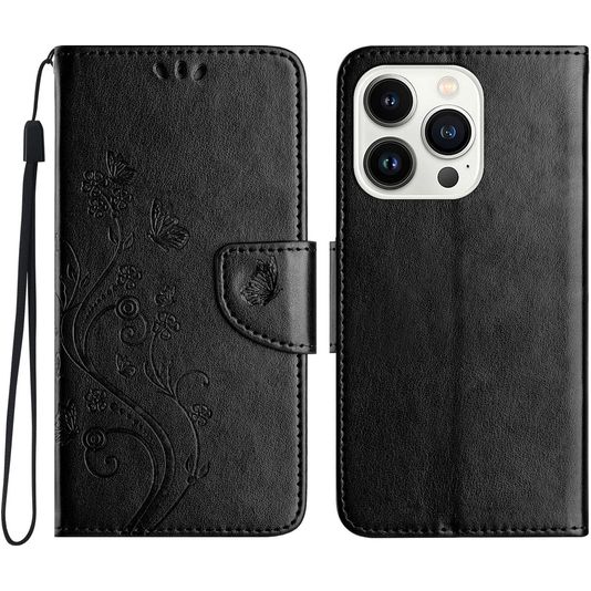 Mobigear Flowers Housse iPhone 16 Pro Max Etui Porte-Monnaie - Noir