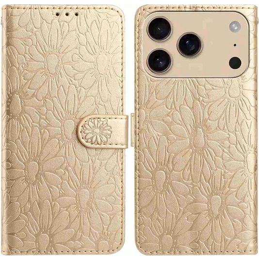 Mobigear Flowers Housse iPhone 17 Pro Etui Porte-Monnaie - Or