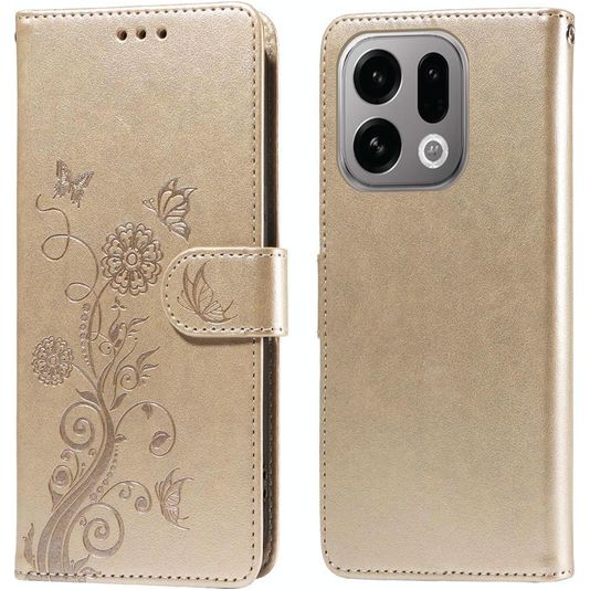 Mobigear Flowers Housse OPPO Find X9 Etui Porte-Monnaie - Or