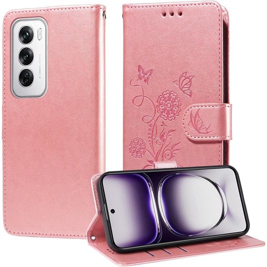 Mobigear Flowers Housse OPPO Reno 12 Pro Etui Porte-Monnaie - Rose doré