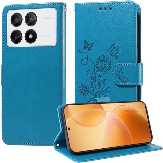 Mobigear Flowers Housse POCO X6 Pro Etui Porte-Monnaie - Bleu