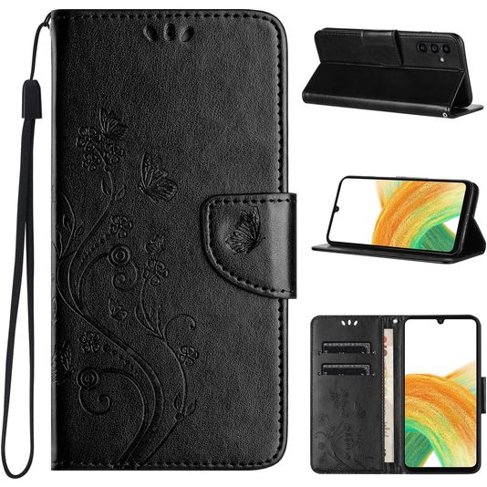 Mobigear Flowers Housse Samsung Galaxy A55 Etui Porte-Monnaie - Noir