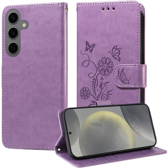 Mobigear Flowers Housse Samsung Galaxy S25 Etui Porte-Monnaie - Violet