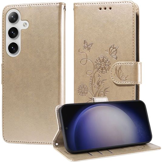 Mobigear Flowers Housse Samsung Galaxy S25 Plus Etui Porte-Monnaie - Or