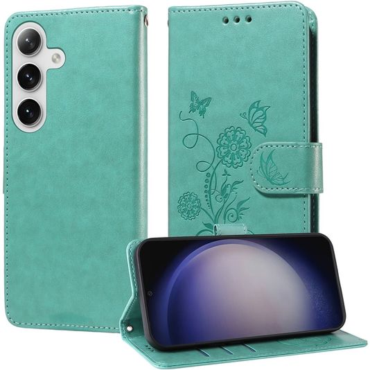 Mobigear Flowers Housse Samsung Galaxy S25 Plus Etui Porte-Monnaie - Vert