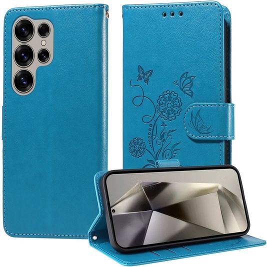 Mobigear Flowers Housse Samsung Galaxy S25 Ultra Etui Porte-Monnaie - Bleu