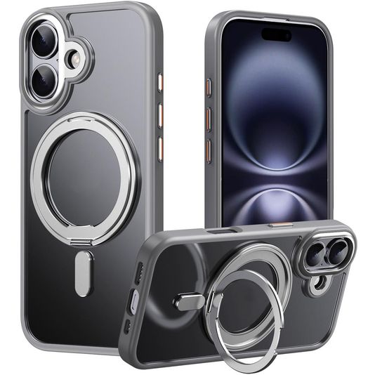 Mobigear Frosted Mag Coque iPhone 17 MagSafe Coque arrière Rigide avec Support Amovible - Gris