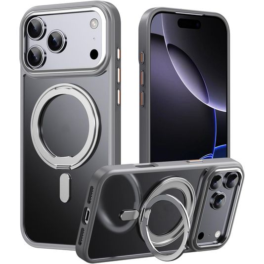 Mobigear Frosted Mag Coque iPhone 17 Pro Max MagSafe Coque arrière Rigide avec Support Amovible - Gris