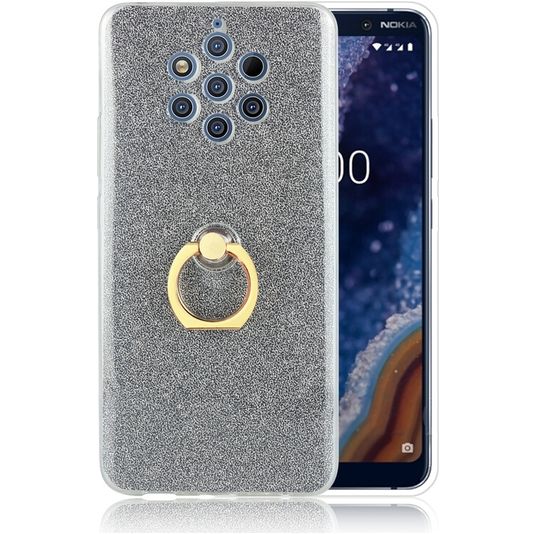 Mobigear Glitter Ring Coque Nokia 9 PureView Coque arrière en TPU Souple avec Anneau-Support - Gris