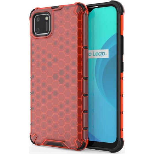 Mobigear Honeycomb Coque Realme C11 (2020) Coque arrière Rigide Anti-Chocs - Rouge