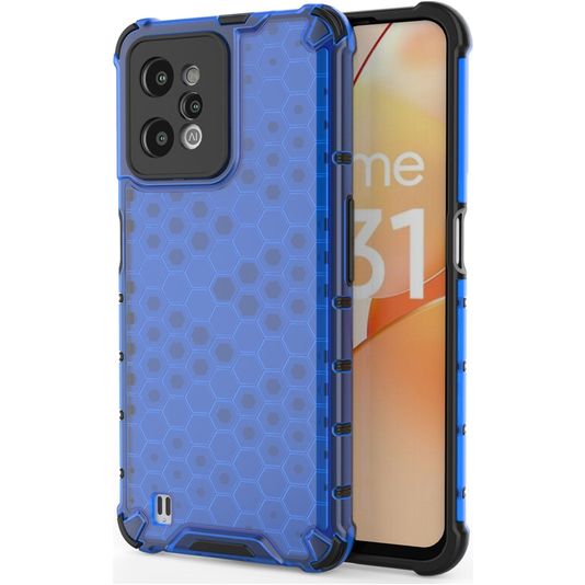 Mobigear Honeycomb Coque Realme C31 Coque arrière Rigide Anti-Chocs - Bleu