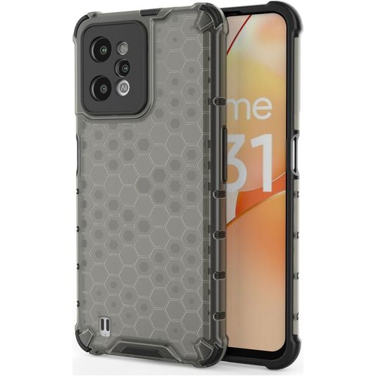 Mobigear Honeycomb Coque Realme C31 Coque arrière Rigide Anti-Chocs - Noir