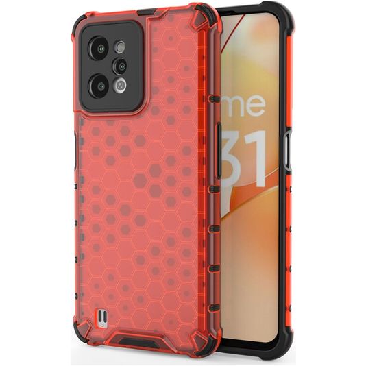 Mobigear Honeycomb Coque Realme C31 Coque arrière Rigide Anti-Chocs - Rouge