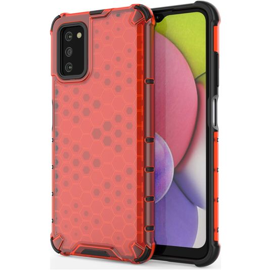 Mobigear Honeycomb Coque Samsung Galaxy A03s Coque arrière Rigide Anti-Chocs - Rouge